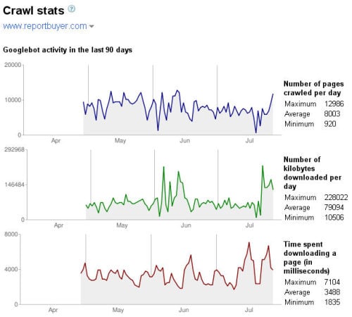 - Google Webmaster Central gives some useful information when you have a sitemap. For example, the following graph shows googlebot activity over the last 90 days. This is actually taken from a friend of ours in our building who offers market research reports.